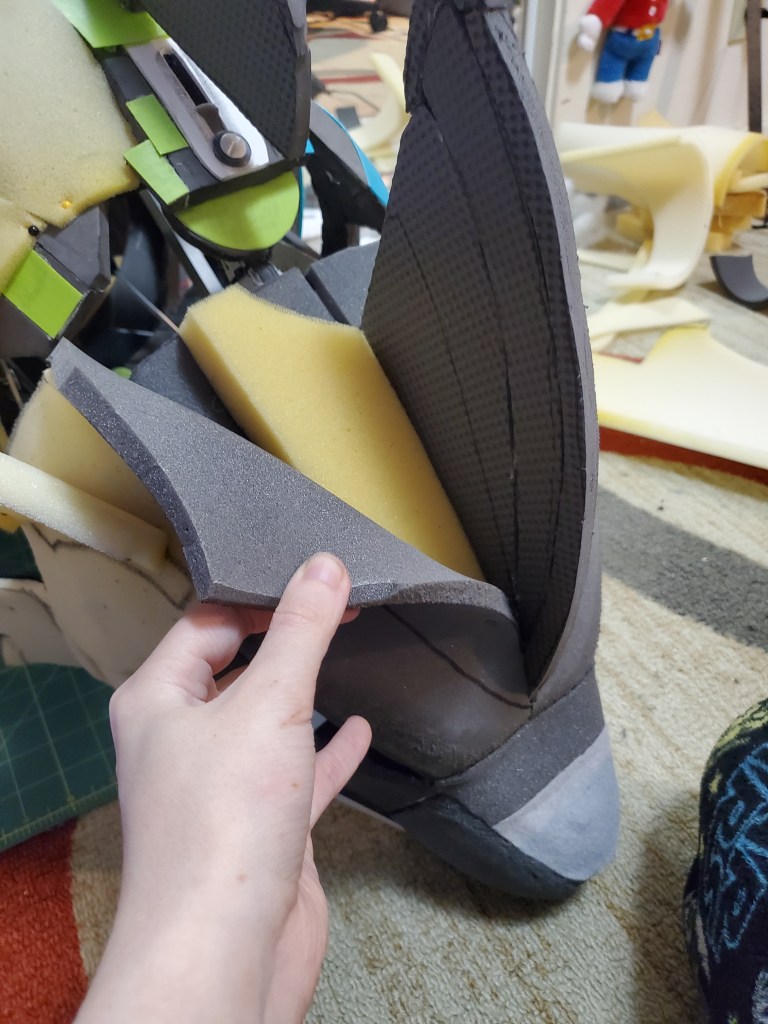I completed these with the grey sand-able foam (slightly more flexible than my similar thickness EVA foam) and filled them with Poly-fil so they’re not totally hollow.