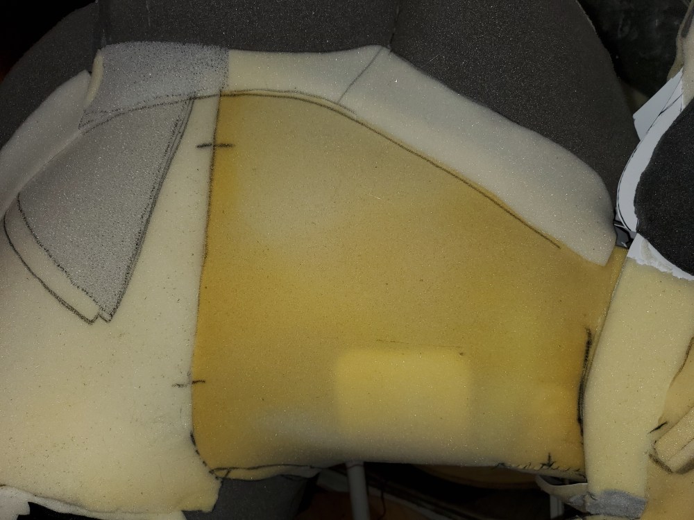 You’ll probably also notice the weird looking patch of foam on the shoulders, it almost looks like a patch of buckram. This is reticulated foam and acts as a vent! Or will hopefully, it really depend on how well the fur I’m using ends up breathing. But hopefully it will help with heat dispersion.