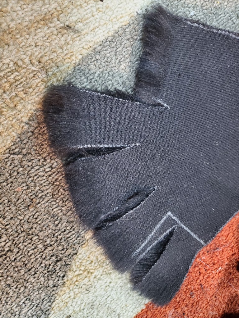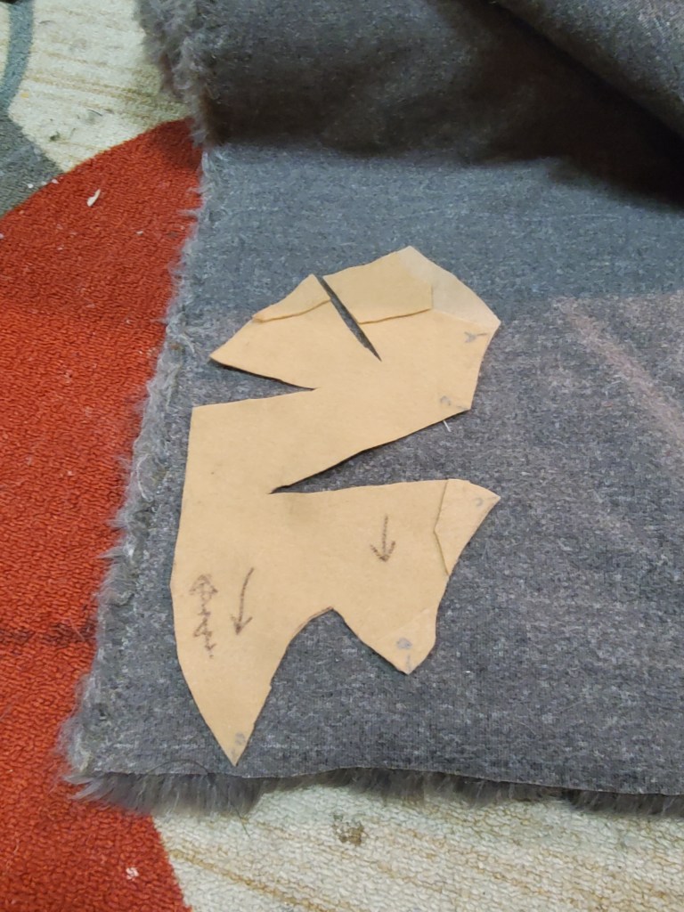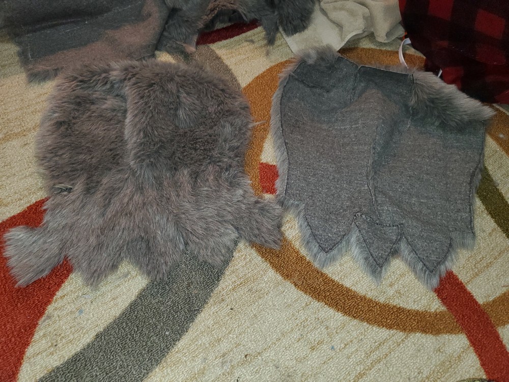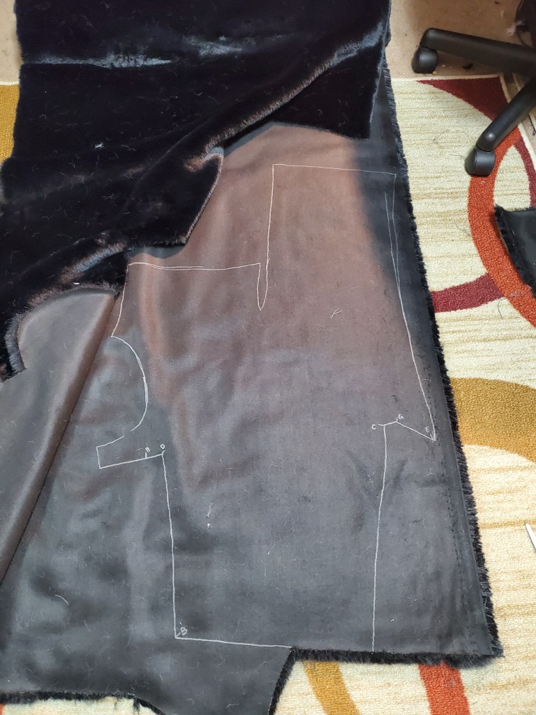 The way I pattern costumes for adding fur or skin is quite different than most use (which is the duct tape method). I use felt to make a sort of cover for whatever piece I’m working on, cut as needed (for darts) and then trace that pattern onto the fur backing. This may make more sense with pictures: