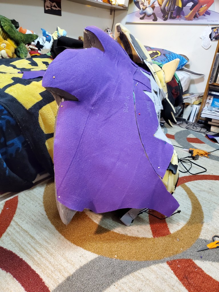 I carved some of the thin foam more as I went along, hence the ugly looking seam there in the middle, which won’t show after I add fur.