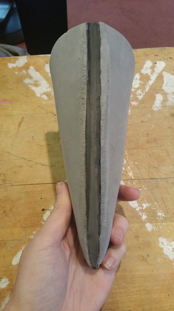 I’m not going to add the spikes at the top or bottom of the leg yet, instead I’m going to pattern them into the fur and stuff them while I fur it, because it would be really hard to get the sewn fur over foam spikes like that, so at this point…