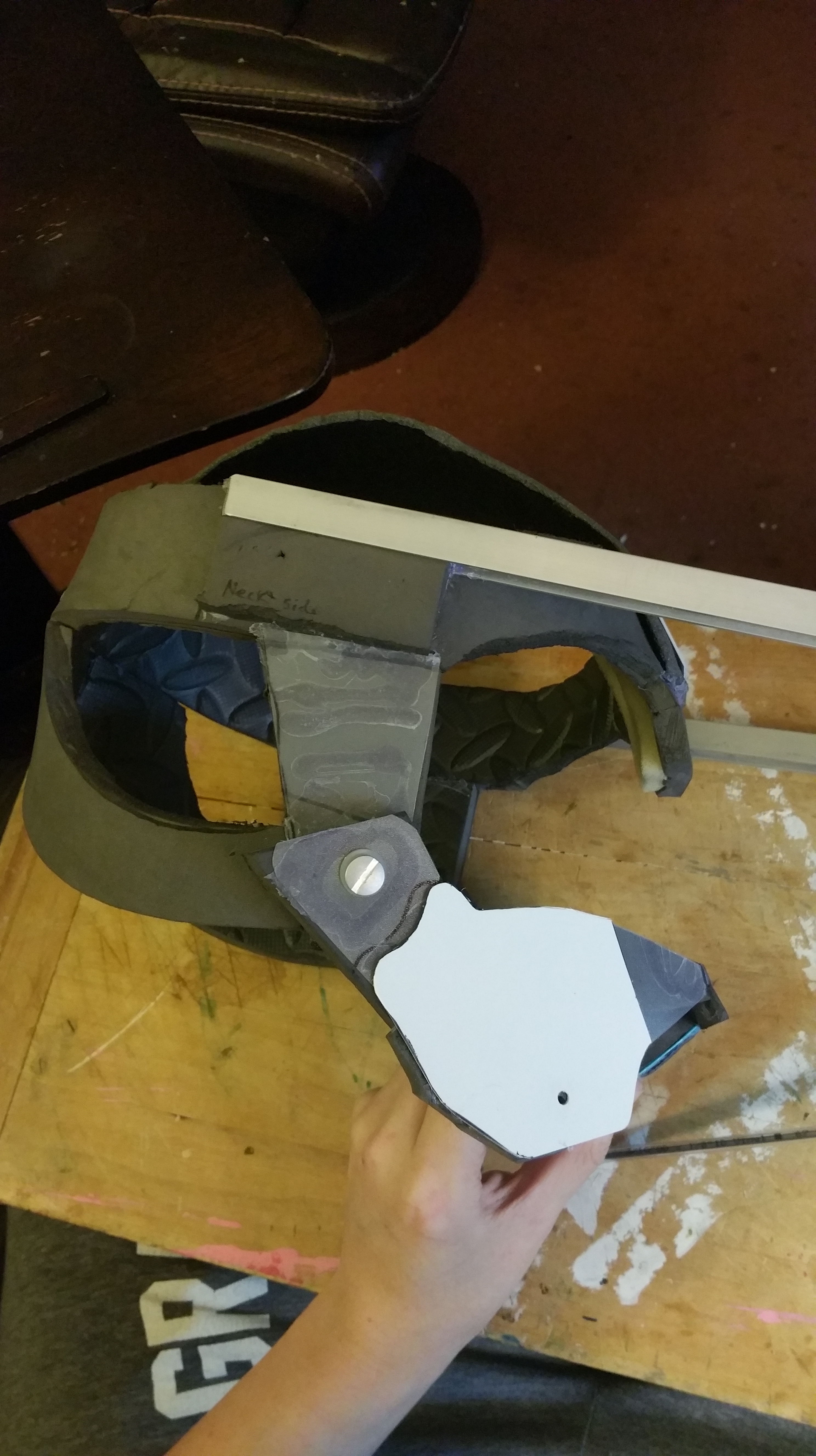 I also slightly modified the front of the chest area to alter how it sat on my shoulders a bit. I felt the neck was a little too far forward and down, so when I hunched over even slightly it was pointed sorta toward the ground. It didn’t take much, but it seems to fit a little nicer now and the neck sits in a good position. The interior padding I will add later will help move it up and out a little bit as well.