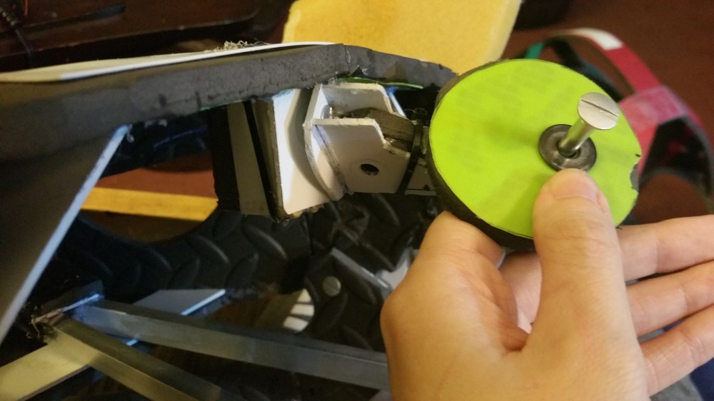 I also took the time to play around a lot more with the movement mechanisms, which are those little white plastic pieces on the side and top of the neck. I actually removed these at one point and tried a lot more things, from elastic, to simple EVA rods, to an actual multi-hinge setup using screw posts for extra pivoting points. None of them worked the way I wanted so I returned to the PVC railing I had made first.