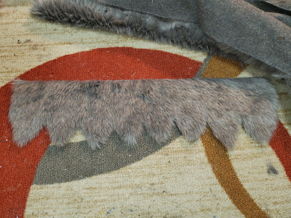 The way I pattern costumes for adding fur or skin is quite different than most use (which is the duct tape method). I use felt to make a sort of cover for whatever piece I’m working on, cut as needed (for darts) and then trace that pattern onto the fur backing. This may make more sense with pictures: